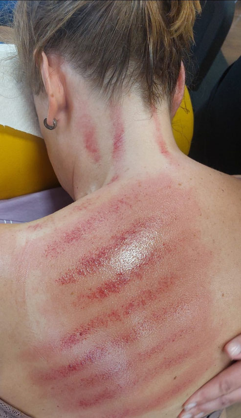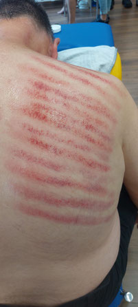 Das ist eine Behandlungsmethode der chinesischen Medizin, bei der mit einem Gegenstand an bestimmten Meridianen die Oberfläche der Haut geschabt wird.